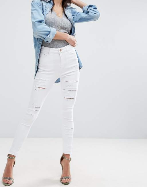 ASOS RIDLEY - Skinny jeans in wit met geraafde scheuren en neergelaten zoom