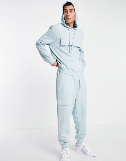 ASOS Unrvlld Spply - Combi-set met logoprint en kangoeroezak op de voorkant in blauw