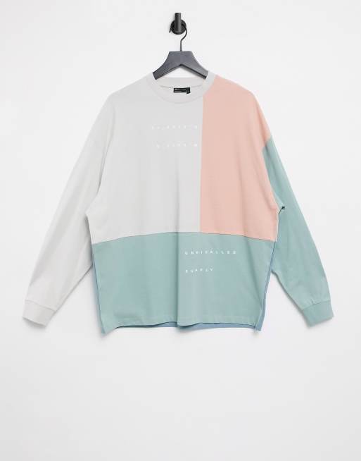 ASOS Unrvlld Supply - Oversized T-shirt van zware stof met lange mouwen en cut-and-sew kleurvlakken
