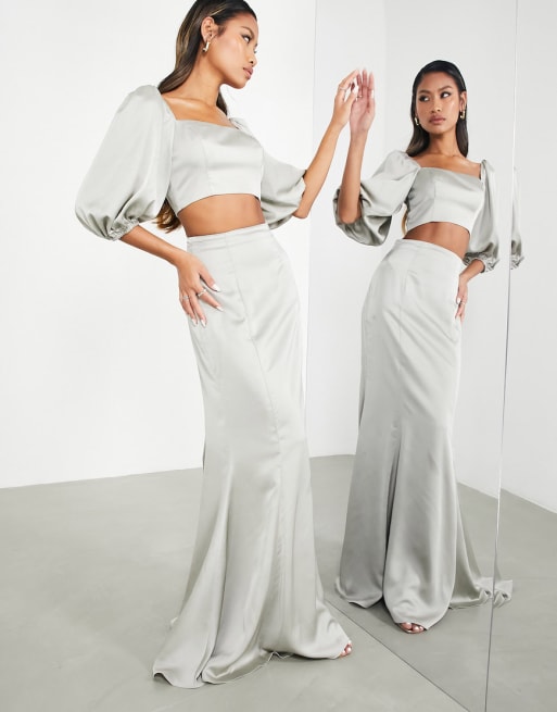 ASOS EDITION - Co-ord set van satijnen crop top en maxirok in saliegroen - LGROEN