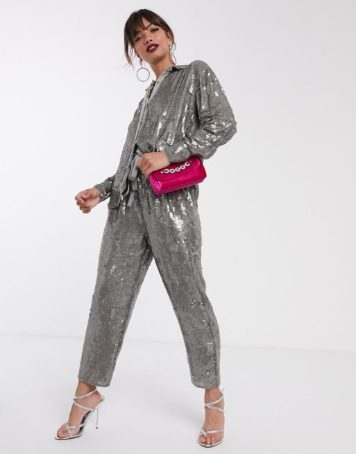 ASOS EDITION - Combi-set van overhemd met lovertjes en joggingbroek