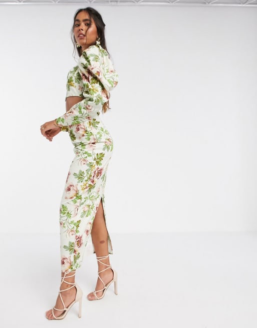 ASOS EDITION - Combi-ste van top met pofmouwen en midirok