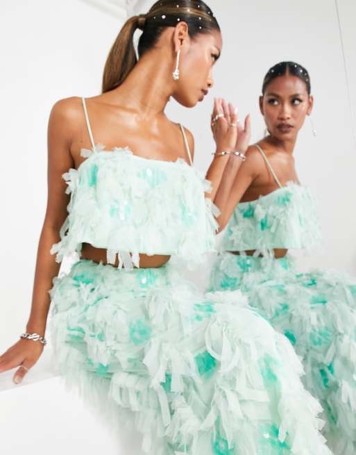ASOS EDITION - Cropped camitop van mesh met lovertjes in lichtgroen