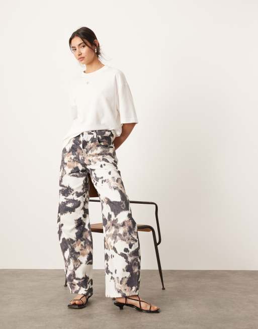 ASOS EDITION - Gestreepte co-ord set van denim met bomberjack en jeans met wijde ronde pijpen in groen en wit