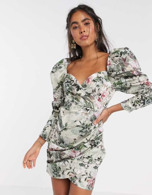 ASOS EDITION - Korte cocktailjurk met pofmouwen in schaduwbloemenprint