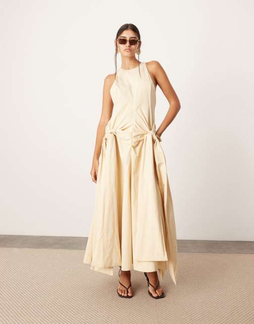 ASOS EDITION - Maxi jurk met racerhals, verlaagde taille en geknoopte rok in stone