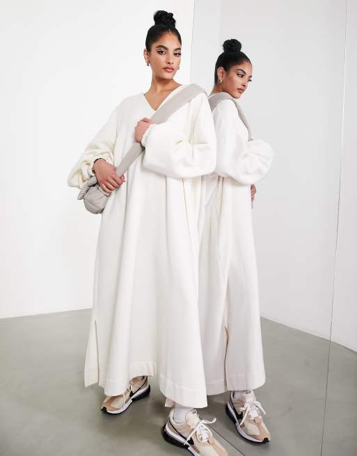 ASOS EDITION - Oversized sweatshirt-jurk in ivoorwit