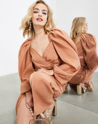ASOS EDITION - Set van crop top en midi-rok in karamel - koper