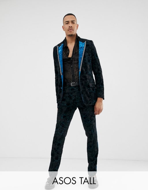 ASOS EDITION Tall - Smal smokingjasje van blauwgroen burnout-fluweel