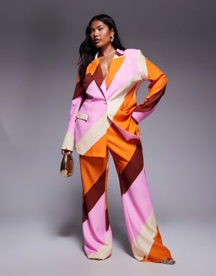 ASOS LUXE Curve - Elegante pantalon met gestreepte print, deel van co-ord set