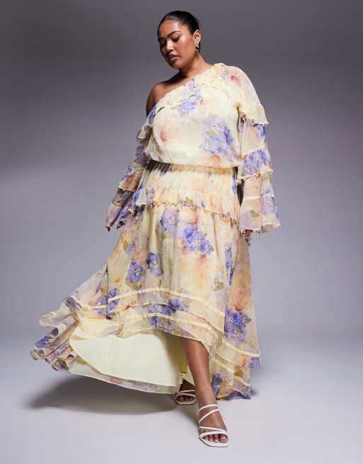 ASOS LUXE - Curve - Maxi-jurk van chiffon met parelversiering en bloemenprint