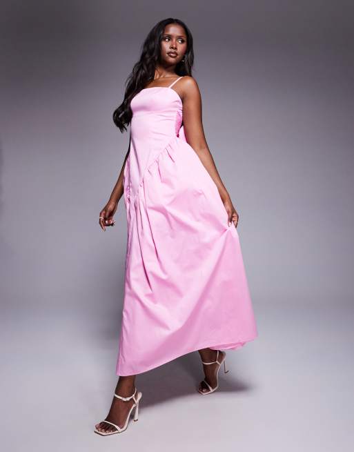 ASOS LUXE - Getailleerde maxi jurk van katoenen satinet met strik aan de achterkant in roze