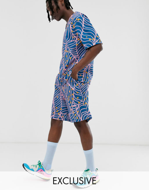 ASOS Made In Kenya - Overhemd met V-hals en oversized short met print