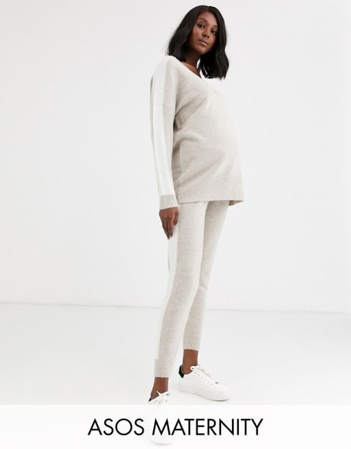 ASOS DESIGN Maternity - Combi-set met gekleurd randje in stone