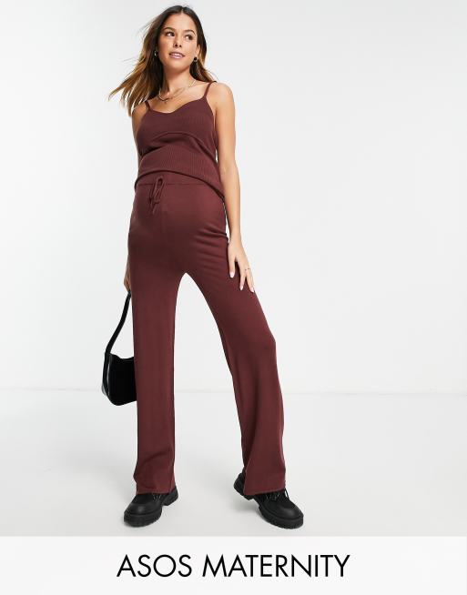 ASOS DESIGN Maternity - Gebreide broek met wijde pijpen in bruin, deel van co-ord set
