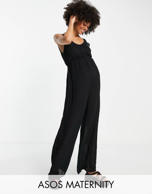 ASOS DESIGN Maternity - Gekreukelde strandjumpsuit in zwart
