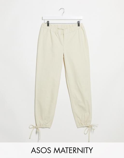 ASOS DESIGN Maternity - Joggingbroek met strik bij de boord in crème