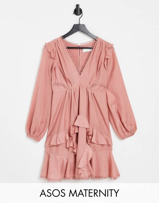 ASOS DESIGN Maternity - Mini jurk van voile met lange mouwen en ronde zoom