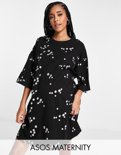 ASOS DESIGN Maternity - Oversized T-shirtjurk met fijne groene borduursels in zwart
