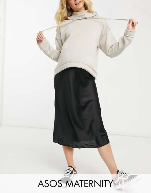 ASOS DESIGN Maternity - Schuin gesneden satijnen midi-rok in zwart