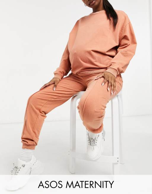 ASOS DESIGN Maternity - Trainingspak met sweater en plooi aan de voorkant in terracotta acid wash