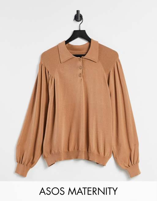 ASOS DESIGN Maternity - Trui met kraagje en volumineuze mouwen in camel