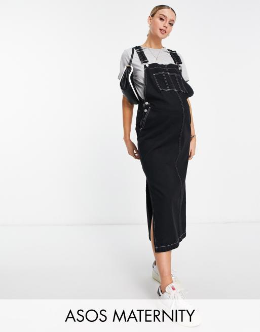 ASOS DESIGN Maternity - Tuinjurk in zwart met contrasterende stiksels