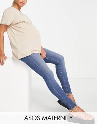 ASOS DESIGN Maternity - Ultieme skinny jeans met onder de buik vallende tailleband in authentiek middenblauw