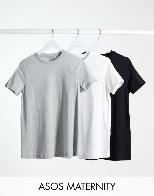 ASOS DESIGN Maternity - Ultimate - Set van 3 T-shirts van katoen met ronde hals in zwart, wit en gemêleerd grijs - BESPAAR - MULTI