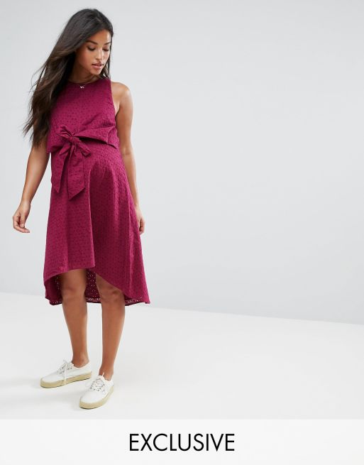 ASOS Maternity - Borstvoeding - Broderie midi-jurk met knoop voor