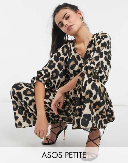 ASOS DESIGN Petite - Aangerimpelde jumpsuit met gestrikte mouwen en luipaardprint