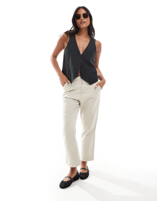 ASOS DESIGN Petite - Chinobroek in stone