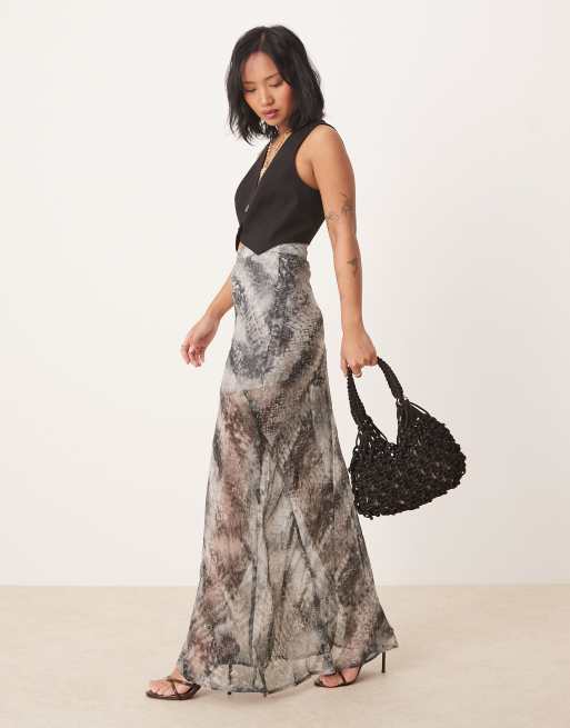 ASOS DESIGN Petite - Doorschijnende maxi-rok in slangenprint