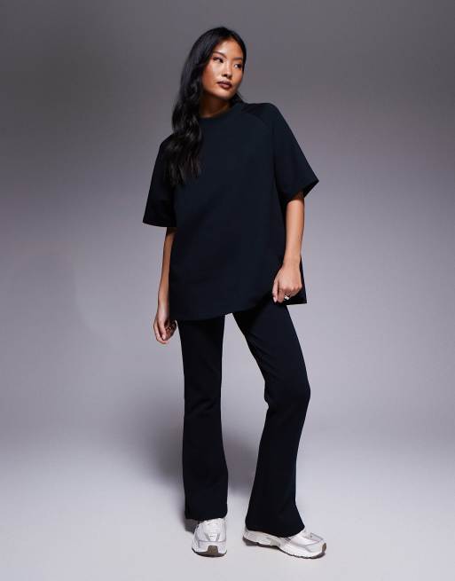 ASOS DESIGN Petite - Flared joggingbroek met interlock-naden in zwart, deel van co-ord set