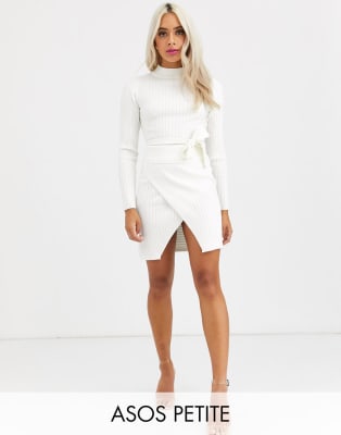 ASOS DESIGN Petite - Geribbelde combi-set met detail in wit