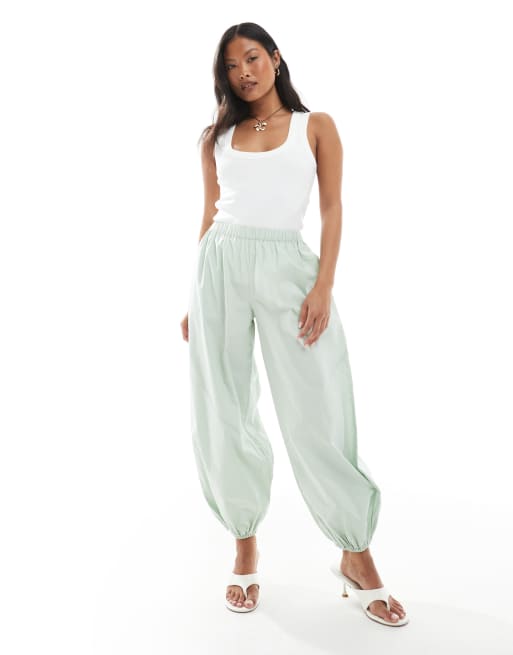 ASOS DESIGN - Petite - Gewassen poplin broek met elastische taille en utility-panelen in saliegroen