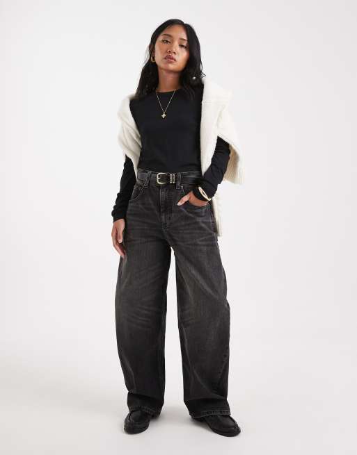 ASOS DESIGN Petite - Jeans met ballonpijpen en hoge taille in antracietgrijs met wassing