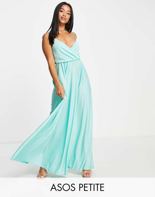 ASOS DESIGN Petite - Lange cami-jurk met diep uitgesneden gestrikte achterkant in mintgroen