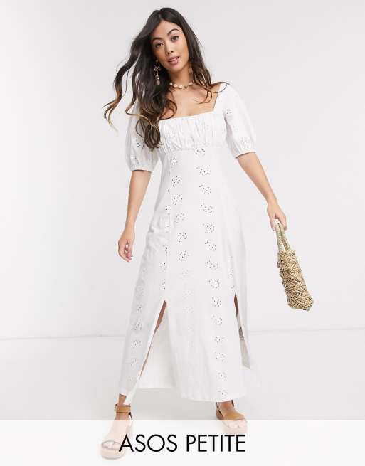 ASOS DESIGN Petite - Lange jurk met vierkante halslijn en broderie in wit