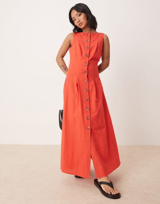 ASOS DESIGN Petite - Maxi giletjurk met rechte hals en knopen in helderrood