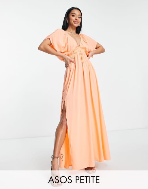 ASOS DESIGN Petite - Maxi strandjurk met fladdermouwen in koraal