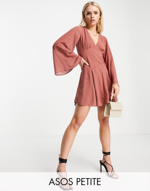 ASOS DESIGN Petite - Mini-skaterjurk van dobbystof met godet-plooien in dieproze