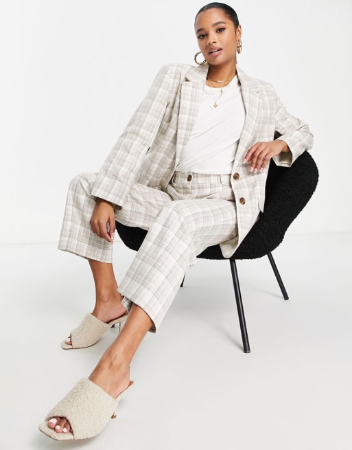 ASOS DESIGN Petite - Mix en Match - Slim-fit geruit pak in lichte kleur