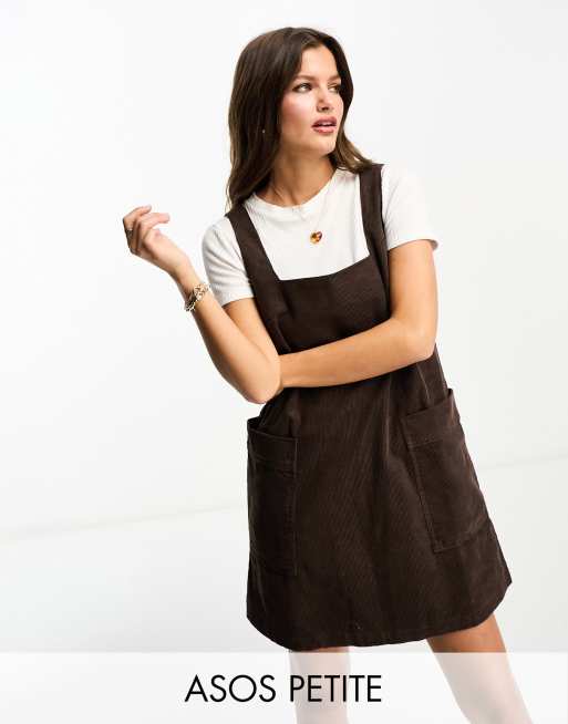 ASOS DESIGN Petite - Overgooierjurk van corduroy in chocoladebruin