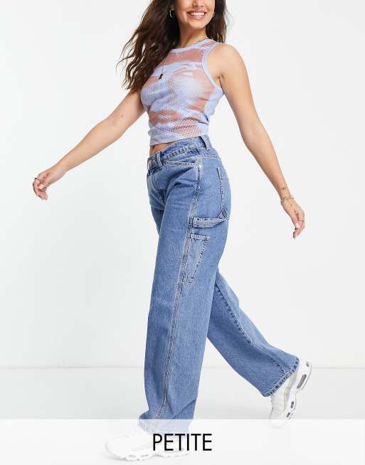 ASOS DESIGN Petite - Oversized 'skater' jeans met medium taille in lichte wassing