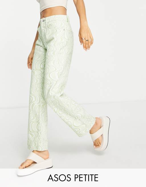 ASOS DESIGN Petite - Rechte jeans met halfhoge taille in groene wervelprint