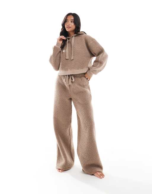 ASOS DESIGN Petite - Set van cropped loungehoodie en broek met wijde pijpen van borg in taupe