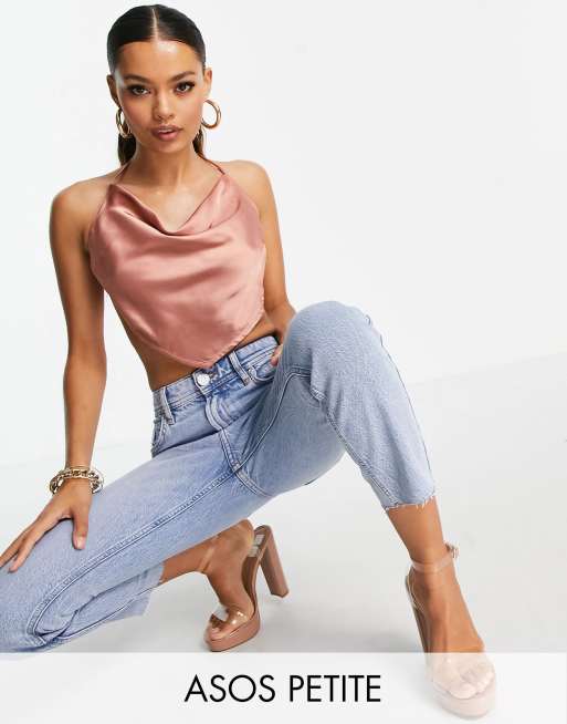 ASOS DESIGN Petite - Sjaaltop met dubbele strik en halternek in bruin
