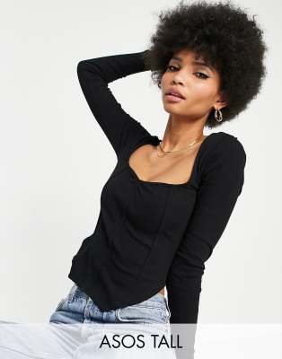 ASOS DESIGN Tall - Aansluitende en geribbelde korsettop met extra wijde halslijn in zwart
