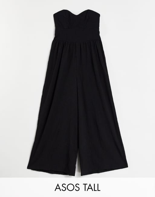ASOS DESIGN Tall - Bandeau-jumpsuit met textuur in zwart